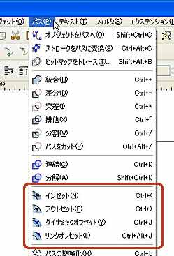 の各コマンドを使うと、簡単にパスをオフセット(一定間隔で外側に広げたり内側に縮めたり)することができます。