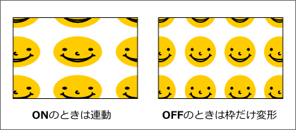 (オブジェクトの変形に従ってパターンも変形)ボタンをクリックしてON/OFFを切り替えます。