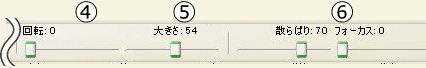 大きさの変化量を設定します。例えば、大きさ:70に設定した場合、100%から170%までの大きさでランダムに変化させます。