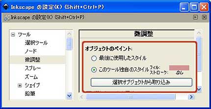 [Inkscapeの設定]の[微調整ツール]の項目が表示されるので、各設定を行います。