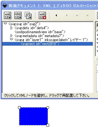 )が付き、下に<svg:rect id="rect2818">という行が追加されました。