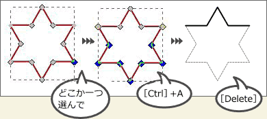 下側のいずれかのノードを選択後、[Ctrl]+Aを押して下側のノードを全て選択し、[Delete]キーを押すと簡単に削除できます。