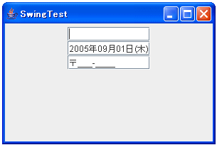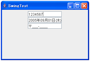 JFormattedTextFieldはJTextFieldのサブクラスです。その為、基本的な部分はJTextFieldと同じです。