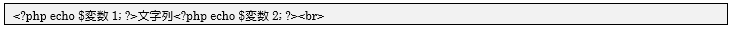 上記のような書き方はPHPモードをベースにした出力方法となりますが、以下のようなHTMLモードをベースにしてPHPの結果を部分的に埋め込む書き方もできます。