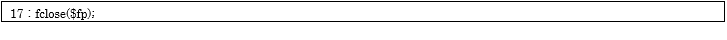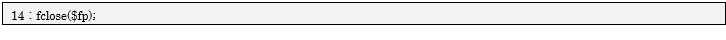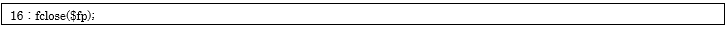 14行目で変数$fp をfclose関数の引数に設定して、最後にファイルクローズ処理を行います。