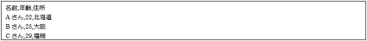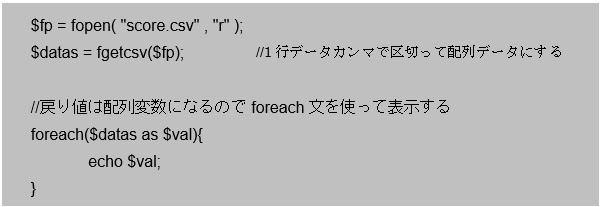 凡例:fgetcsv関数で1行のCSV形式データを読み込む