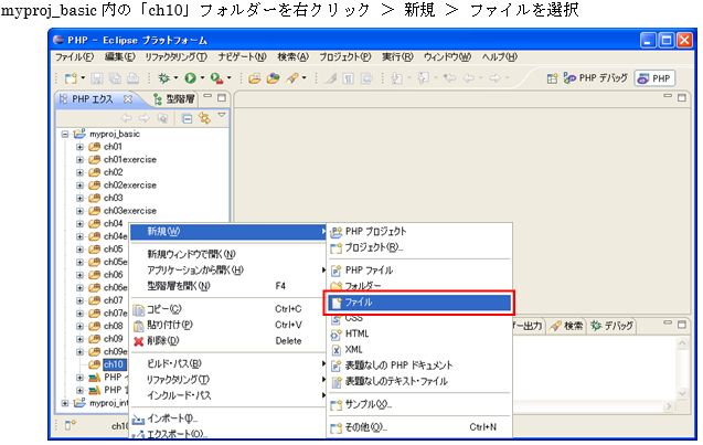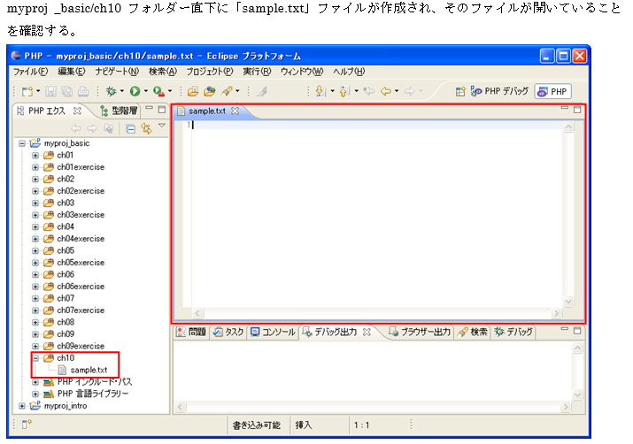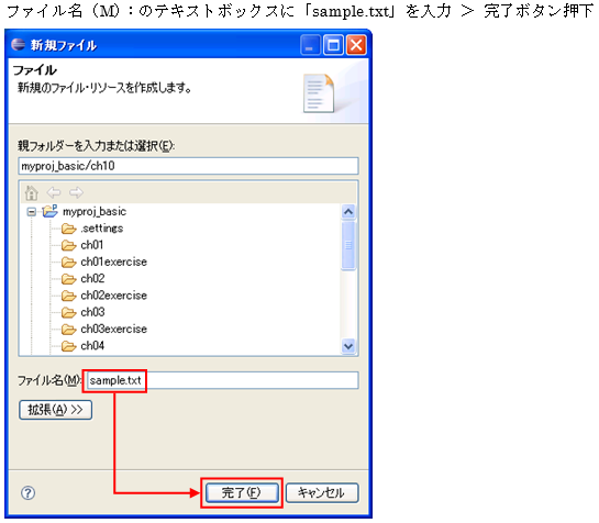 プログラムを作成する前に、Eclipseの機能を使ってオープンするファイル「sample.txt」の準備をしましょう。