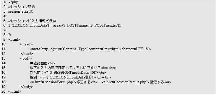 続いて確認画面の「sessionConfirm.php」の解説を行います。