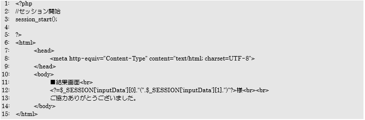 ③入力の結果を表示する画面:sessionResult.php