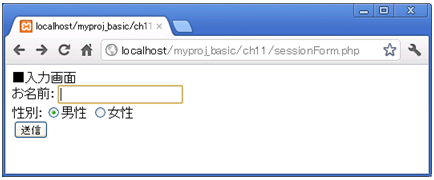 アクセスURL:http://localhost/myproj_basic/ch11/sessionForm.php