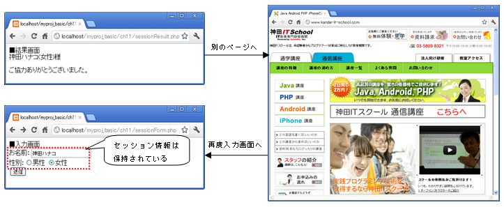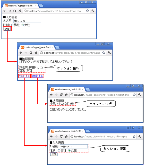 図 11.3.6: セッションを複数画面で利用した画面遷移イメージ