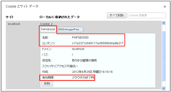 図 11.3.2:クッキーに登録されたセッションID