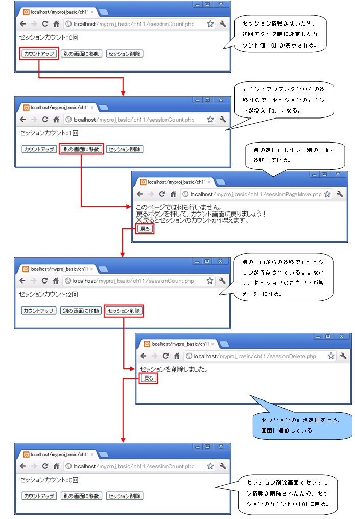 アクセスURL:http://localhost/myproj_basic/ch11/sessionCount.php