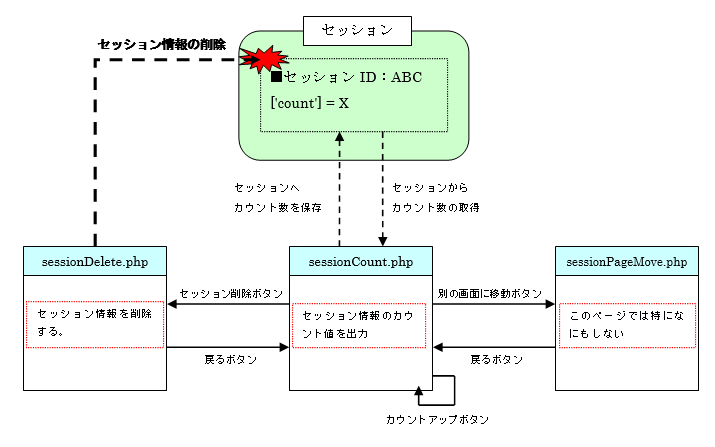 アクセスURL:sessionCount.phpからの画面遷移でアクセスされる