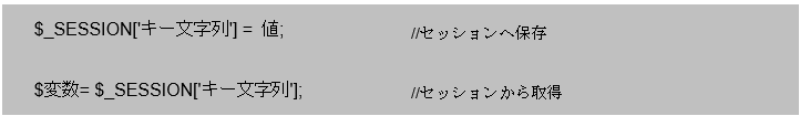スーパーグローバル変数$_SESSIONを利用して、キー文字列は任意で設定します。