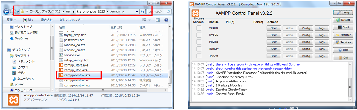 ※本テキストでのインストール先:「C:\usr\kis_php_pkg_ver2023\xampp」