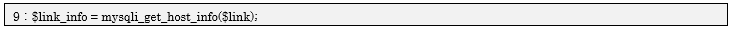 18行目では接続情報(localhost via TCP/IP)を画面に表示しています。11行目でこのサーバへ接続を切断しDB自体は使用不可能になっていますが、9行目で接続情報のテキストを変数$link_infoに代入したのでそのまま表示できます。