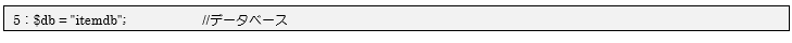 5行目に変数$dbに選択するデータベース名「itemdb」を設定します。※12.2で準備したデータベースです。
