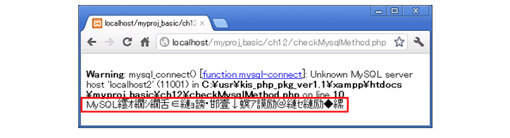 アクセスURL:http://localhost/myproj_basic/ch12/checkMariaDBMethod.php