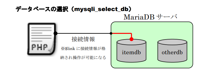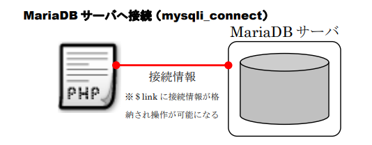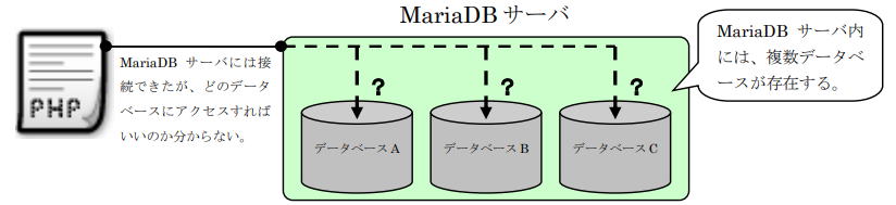 PHPからデータベースを利用するには、必ずMariaDBサーバへ接続する必要があります。