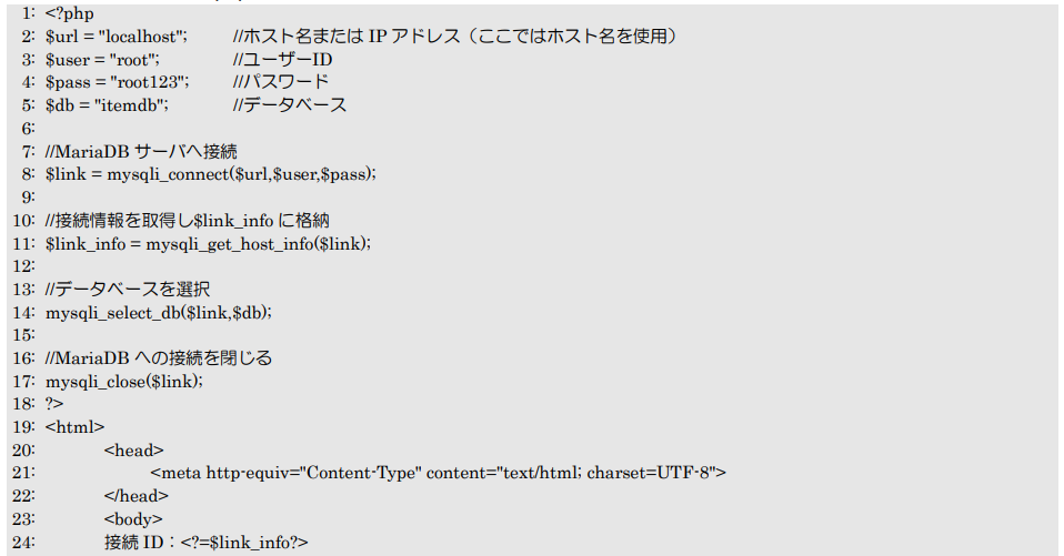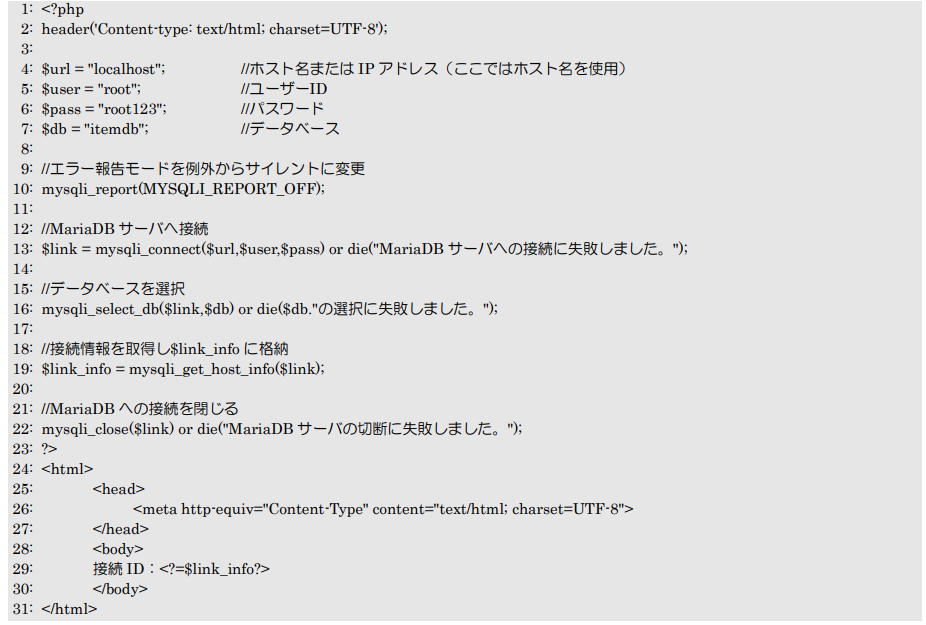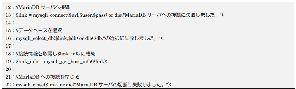 - MariaDBサーバへ接続:mysqli_connect関数