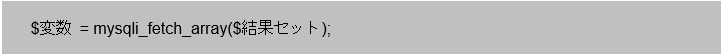 - 検索結果から1レコード取得:mysqli_fetch_array関数(繰り返し文と連携して全件取得が可能)
