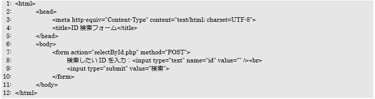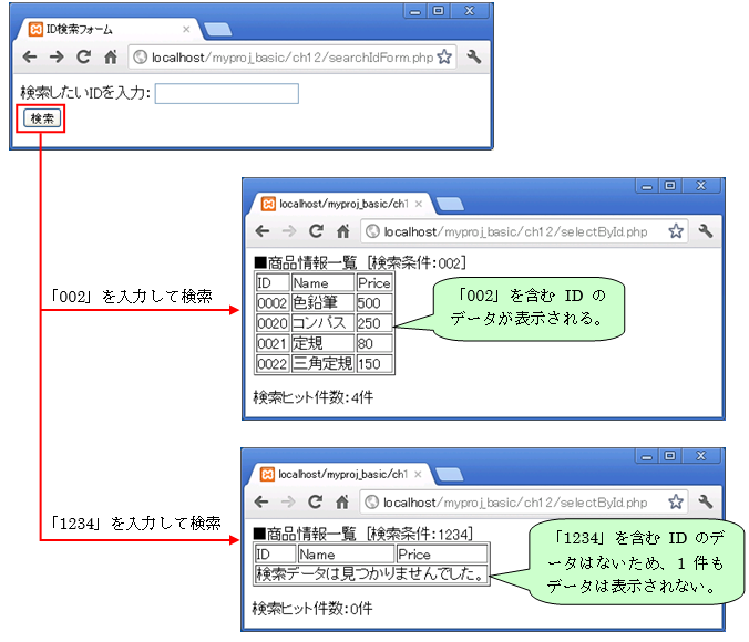 アクセスURL:http://localhost/myproj_basic/ch12/searchIdForm.php