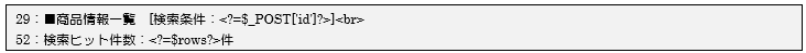 29行目で今回の検索条件のIDを画面に表示し、52行目で検索にヒットした件数を画面に表示しています。