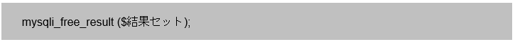 - 検索結果情報の開放:mysqli_free_result関数