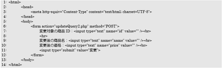 アクセスURL:updateForm2.phpからの画面遷移でアクセスされる