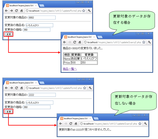 アクセスURL:http://localhost/myproj_basic/ch12/updateForm2.php