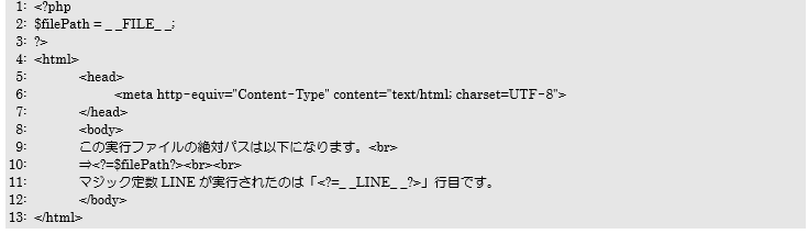 マジック定数を利用してファイルの絶対パスと行番号を、Web画面に表示して確認します。