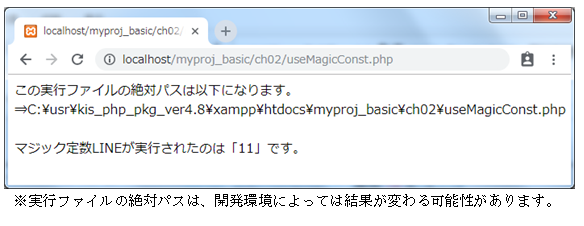 アクセスURL:http://localhost/myproj_basic/ch02/useMagicConst.php