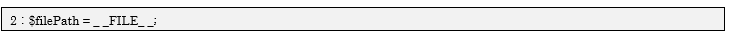 2行目ではマジック定数「_ _FILE_ _ 」を使って「useMagicConst.php」の絶対パスを取得し、変数$filePathへ代入しています。