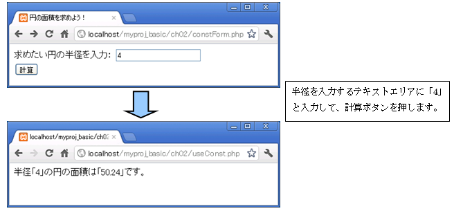 アクセスURL:http://localhost/myproj_basic/ch02/constForm.php