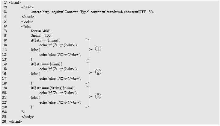 問3 以下に示すソースコードを実行した場合、3つのif-else文はどちらのブロックが処理されるか答えなさい。