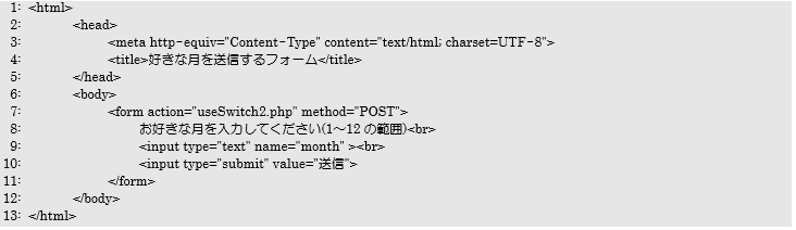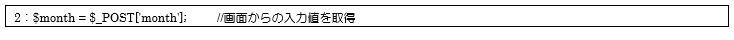 2行目でswitchForm.phpからの入力データを変数$monthに代入しています。