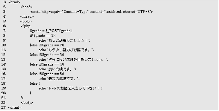 問3 以下に示すsample.phpのif文をswitch文に書き換えたpractice0302.phpを作成しなさい。