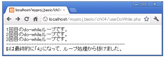 アクセスURL:http://localhost/myproj_basic/ch04/useDoWhile.php