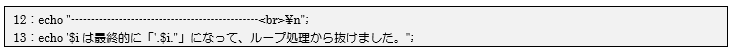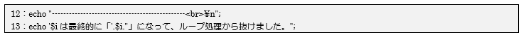 9行目は何回目のループなのかを確認するために、$iの値をメッセージと一緒に表示しています。