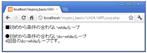 アクセスURL:http://localhost/myproj_basic/ch04/diffLoop.php