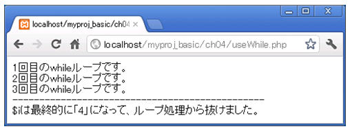 アクセスURL:http://localhost/myproj_basic/ch04/useWhile.php