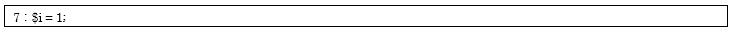 7行目でwhile文の条件式に使用する、カウンタ変数$iを初期値1で設定しています。