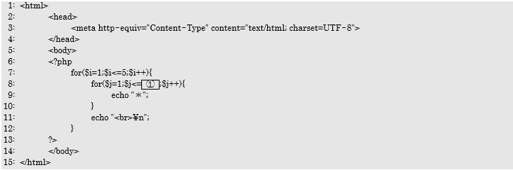 問3 以下の実行結果になるpractice0402.phpを多重ループを使って作成しなさい。