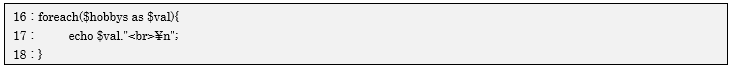 16~18行目で選択された趣味のデータをforeach文を使って全て画面に表示しています。