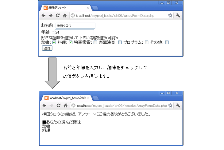 アクセスURL:http://localhost/myproj_basic/ch06/arrayFormData.php