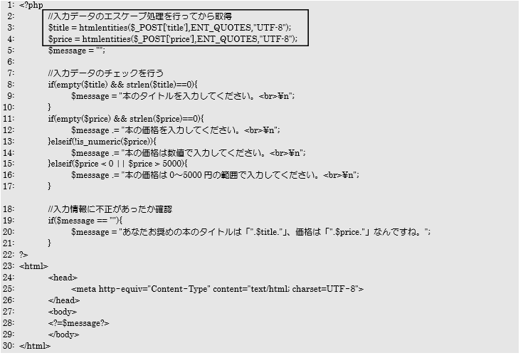 ③ ×:入力値チェックと出力データの無害化を行う必要があります。