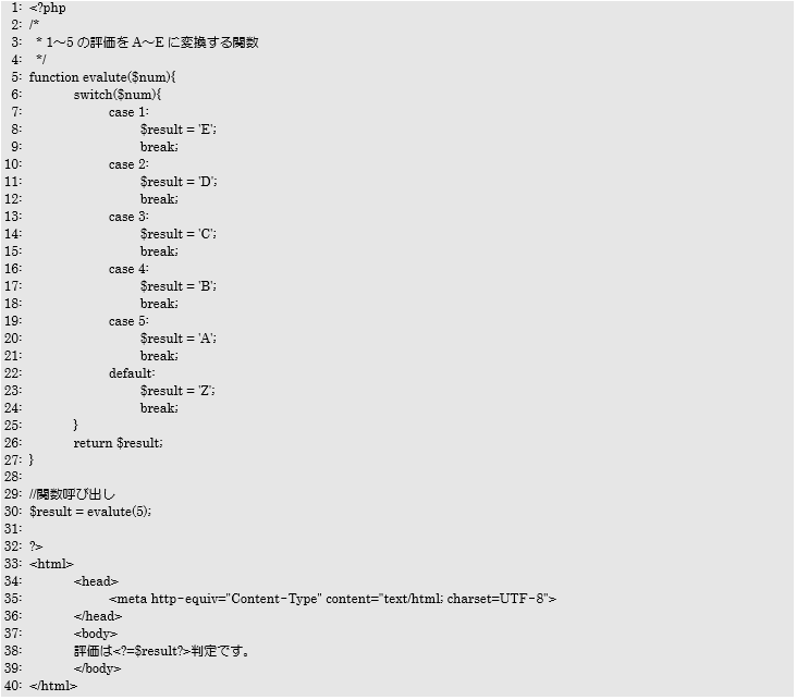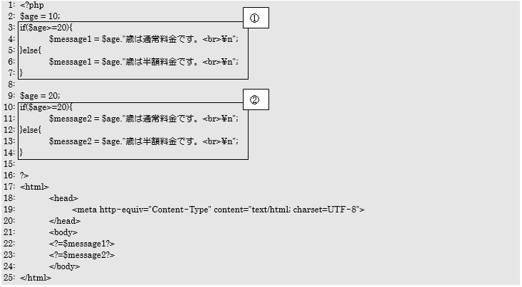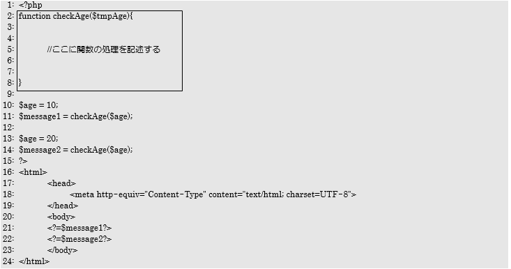 問4 次に示すソースコード①と②の部分の処理を関数化してpractice0703.phpを作成しなさい。