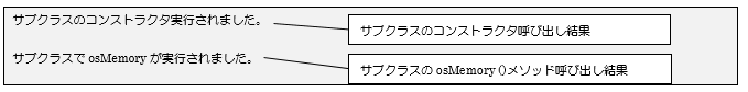 処理内容を見比べると実行結果では明らかにサブクラスの内容が出力されているので、上書きされていることが確認できます。