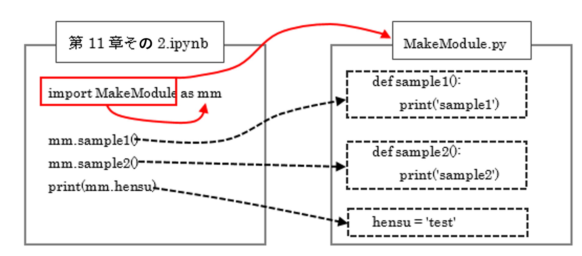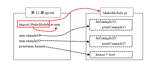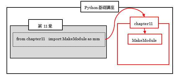 凡例:「Python基礎講座」内のファイルから「chapter11/MakeModule.py」の呼び出す